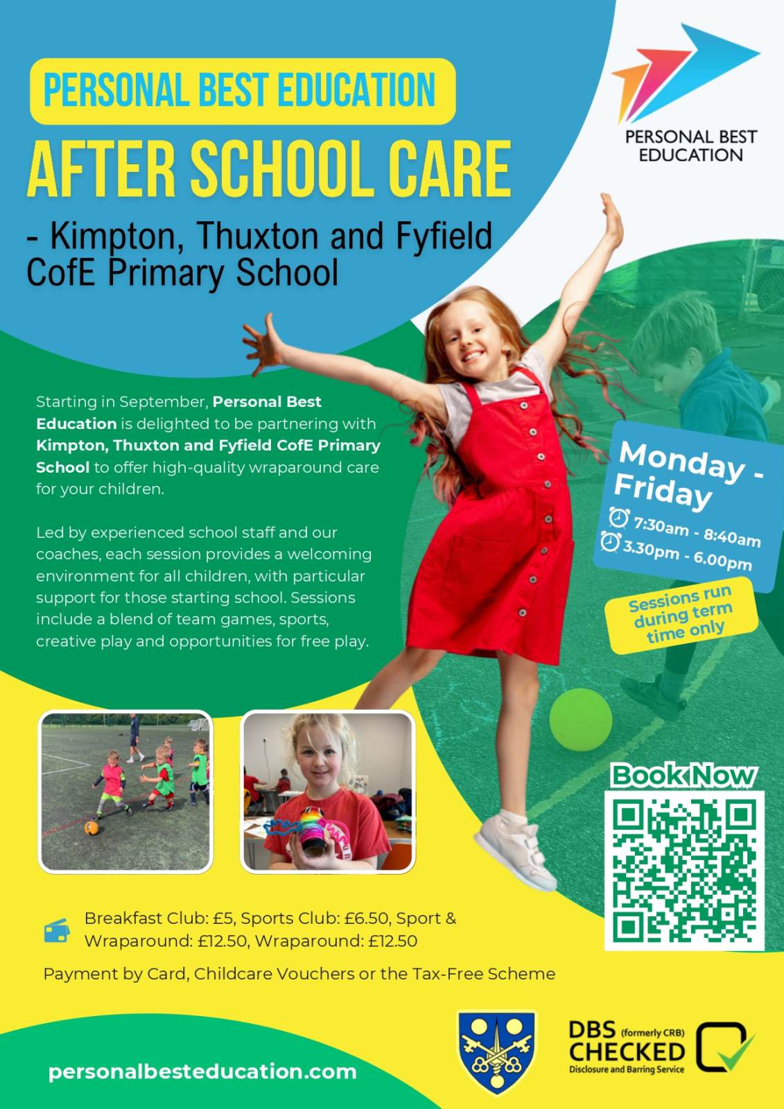 We are delighted to be able to offer Wraparound Care from 7.30am-6.00pm. in partnership with Personal Best Education, offering breakfast club, after school sports and wraparound provision.